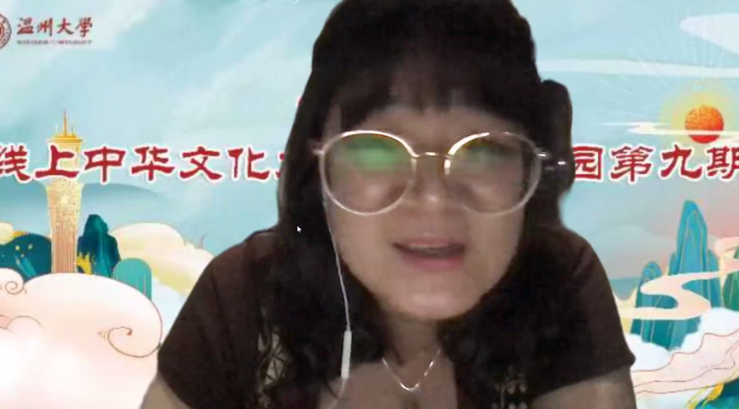 来自香蕉视频 华侨学院的黄钰老师作为班主任代表发言。她表示,作为教务人员陪伴着大家一同学习中华文化的经历令人难忘,每天都能看到学员们的进步,大家在课堂上与老师积极交流、热烈讨论,认真、按时完成课后作业,从中都能感受到大家对于学习中华文化的热情与热爱。同学们相互鼓励、相互帮助、相互学习、相互监督,让我们的课堂被一种积极向上的氛围所萦绕,永远充满着活力。希望同学们能够在大乐园活动结束后继续坚持学习中华文化,坚持梦想,永远保持一颗对知识的好奇心与对探究中华文化的热爱。