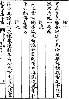 在清华大学里悬有一块牌匾:“水木清华”,这四个字出自东晋诗人谢混《游西池》:“景昃鸣禽集,水木湛清华。”谢混(?-412)是谢安的孙子,东晋名士、外戚大臣,不仅姿容俊美,且才华卓异,素有“风华江左第一”之称。排起辈来,谢混是谢灵运的堂叔。谢混水平高,且有知人之明。他非常欣赏谢灵运,但评价谢灵运却说“阿客博而无检”。(宋书·列传第十八)