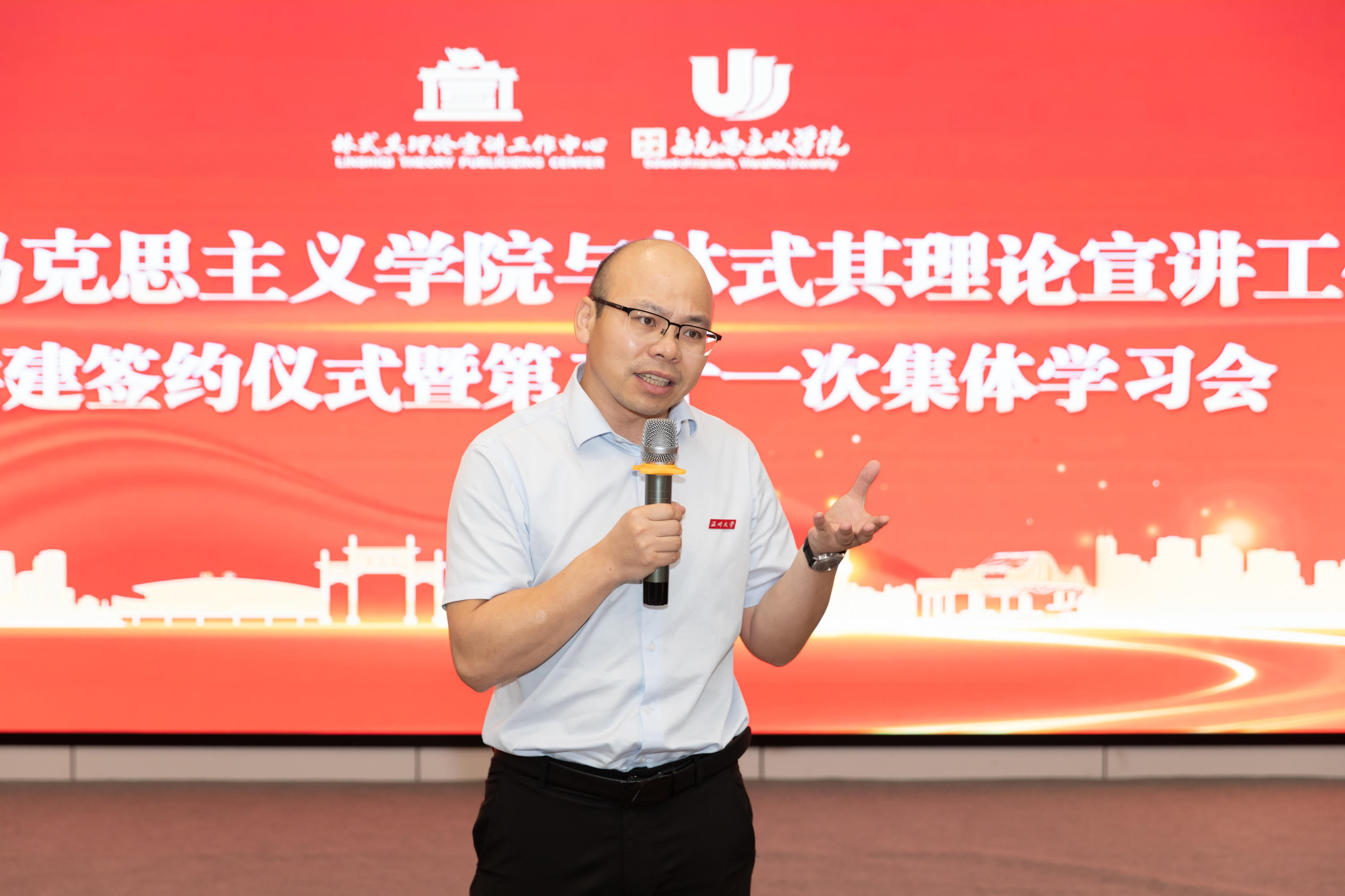 随后,林式其理论宣讲工作中心宣讲员杨胜带来《台湾问题》的宣讲,香蕉视频 马克思主义学院副院长吴志敏带来《习近平总书记“7·26”重要讲话精神和〈习近平谈治国理政〉第四卷》的宣讲。现场,两家单位互相交流宣讲经验和宣讲心得,学习氛围浓厚。温大马院与林式其理论宣讲工作中心进行合作共建,发挥各自优势,加强合作交流,有助于把理论宣讲工作做得更深入、更有效,也更接地气、更入脑入心。