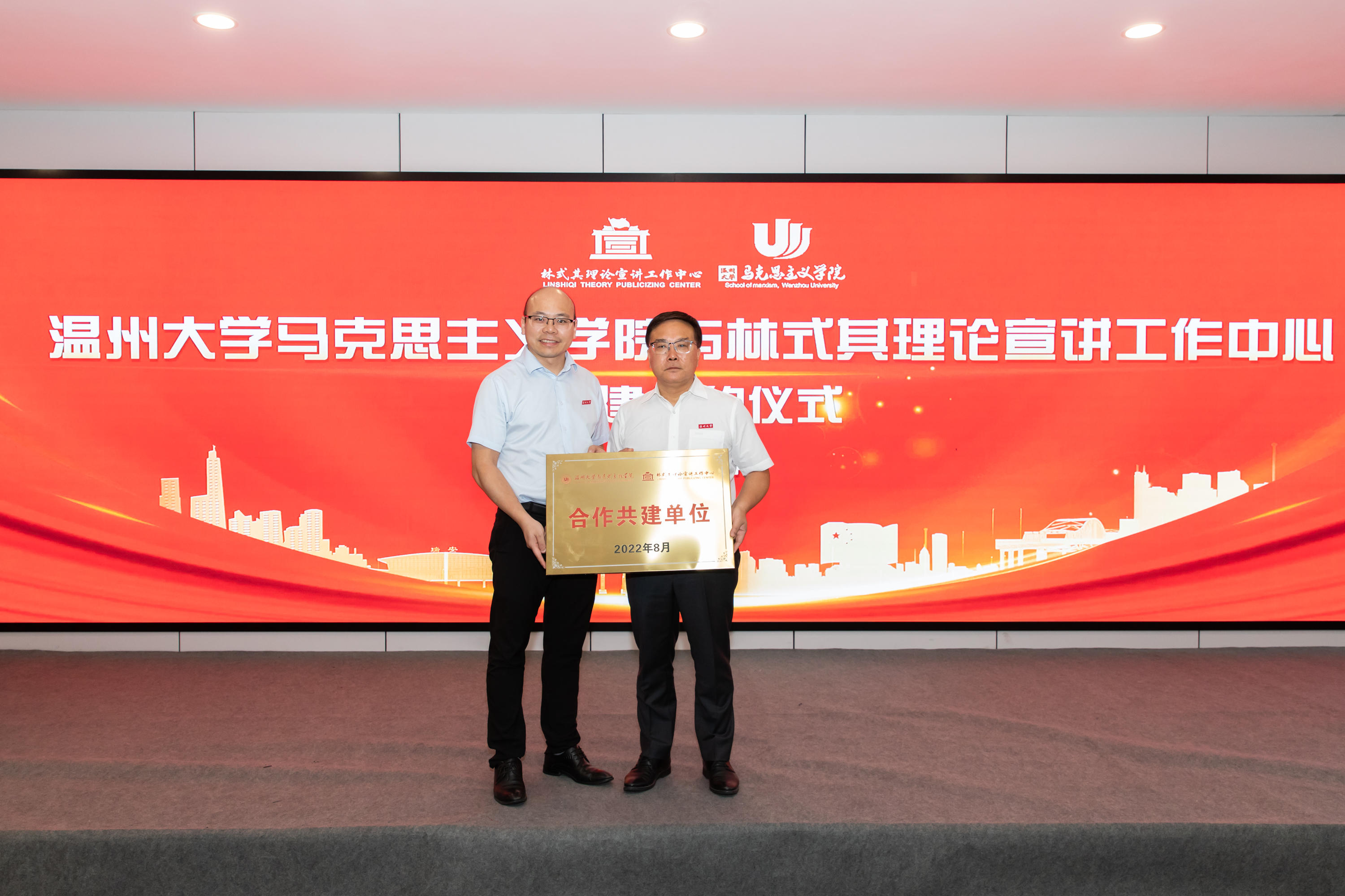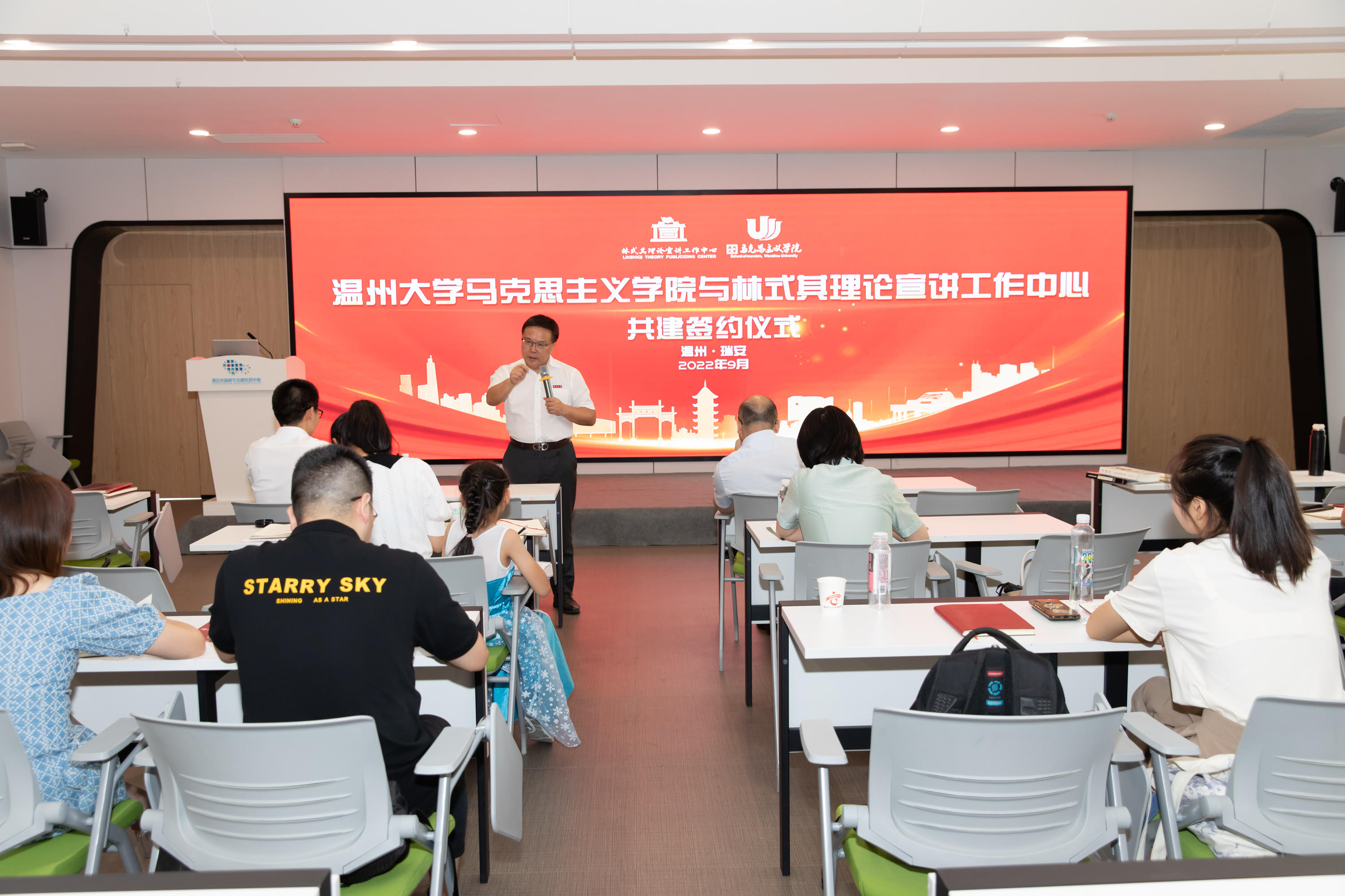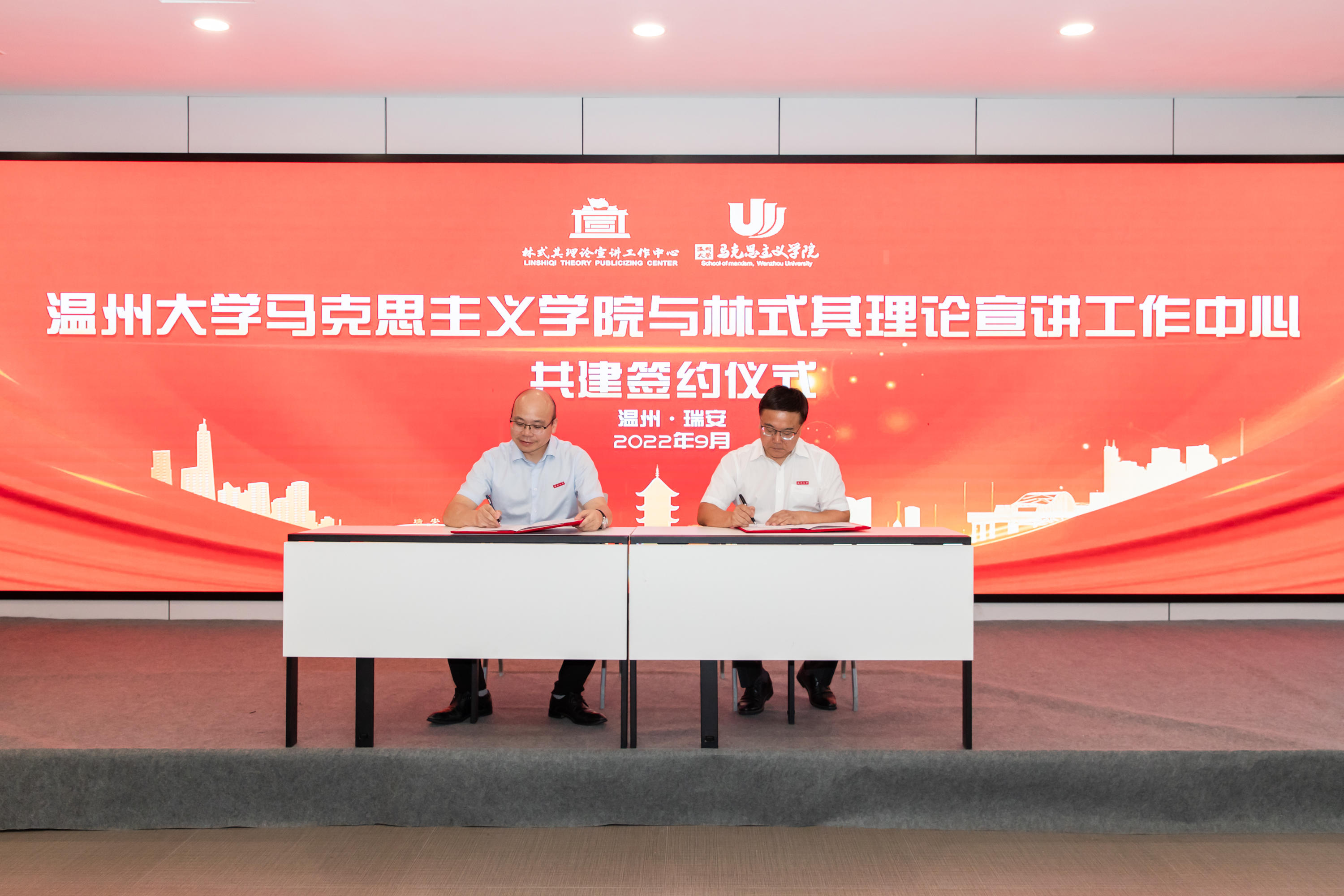当天在瑞安市新时代文明实践中心,香蕉视频 马克思主义学院院长卓高生和林式其理论宣讲工作中心创办者林式其,共同签署香蕉视频 马克思主义学院与林式其理论宣讲工作中心合作共建协议书,温大马克思主义学院聘请林式其为客座教授。接下来,双方将共同探索建立高校与基层宣讲人才互派交流、宣讲活动联动举办、理论研究共研共享的机制,打造理论宣讲的全新阵地。