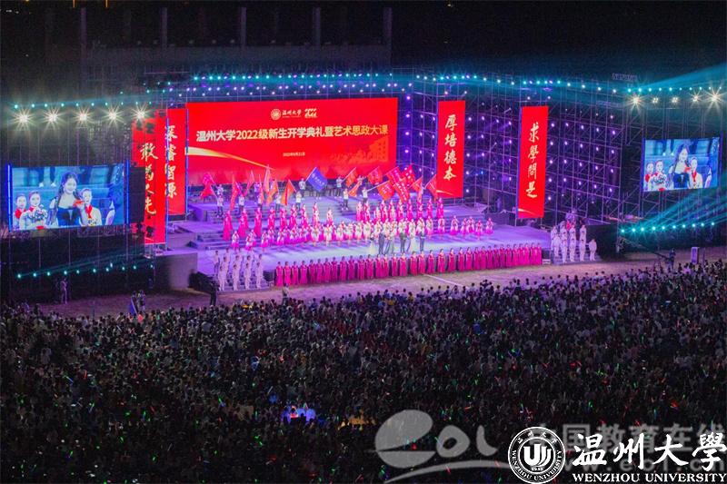 为了全面推进“大思政课”建设,构建“三全育人”工作格局和“五育并举”培养体系,进一步创新思政课育人载体,丰富思政课育人内涵,以艺术之形丰富教学内涵,以艺术之美浸润时代新人,本次开学典礼还特别举办了一场别开生面的艺术思政大课,聚焦《温大·梦起航》《瓯越·忆乡情》《华夏·铸辉煌》三个篇章,开启新生温大第一课。