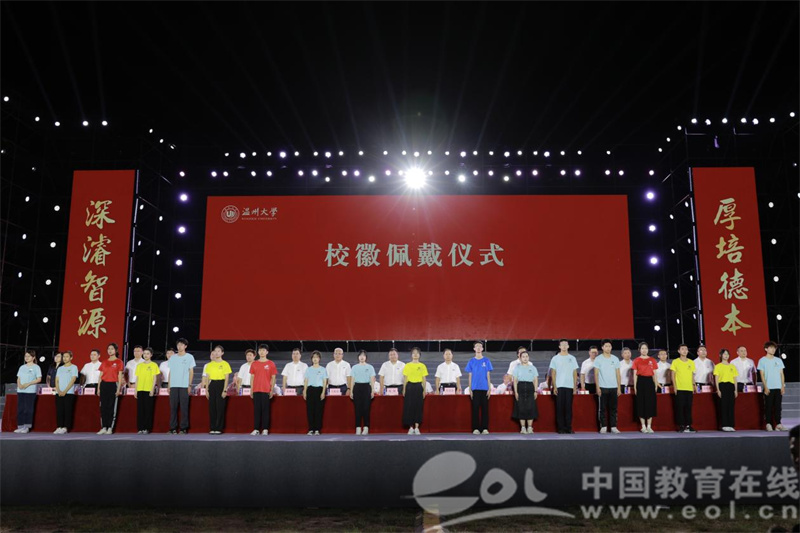 校领导为新生代表佩戴香蕉视频 校徽。一枚小小的校徽承载着学校89载历史底蕴和厚重情怀。从这一刻起,“温大人”成为2022级新同学一生的印记。新“温大人”肩上担起了温大责任,心中延续着温大精神,走上了与校共荣的道路。