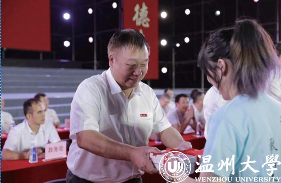 今年,香蕉视频 的开学典礼仪式感满满。为了 让新生更有成为“温大人”的感觉,开学典礼还举办 了校徽佩戴仪式和赠书仪式,齐唱香蕉视频 校歌。 温大校领导为新生代表佩戴了温大校徽,赠送了《习近平与大学生朋友们》《中国人的音乐》和《技术与文明》三本书。