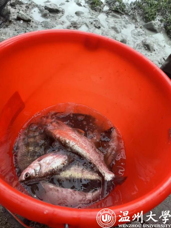 “开鱼”未过十分钟,已经有学生提着第一桶鱼上岸了,红色的桶中十几条鱼层层叠叠,以罗非鱼和翘嘴鱼为主。“有大鱼!有大鱼!”突然,又有同学抓到大鱼,引来了阵阵欢呼和围观。原来是来自该校马克思主义学院的两位女生,赵杨洁和黄桐桐共同努力抓到了她们的第一条鱼,一条重量约1.5斤的红田鱼:“我们以前从来没有参与过这样的活动,抓鱼好难啊。”爱笑的女孩不会差,从未抓过鱼的她们一上来就抓到了大鱼。