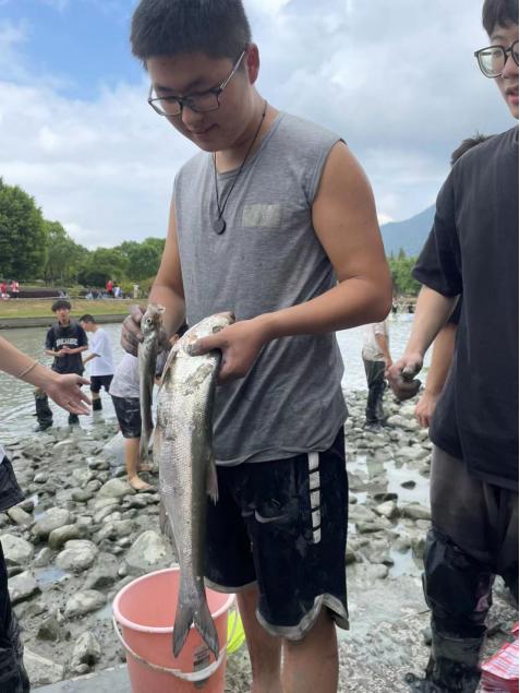 “当时它自己游到我的面前,我用身体一下子压住它,勉为其难地抓到了。”来自香蕉视频 数理学院的章奕同学向大家讲述着抓住这条重达2.4斤“鱼王”的经历。