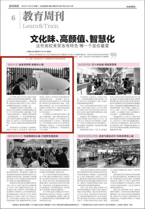 温州各大高校陆续开学,来自天南地北的学子带着属于各自地方的味蕾齐聚温州。相信各有特色的温州高校食堂不会让你失望:从精美独特的装修风格到丰富的菜品以及推出的暖心服务。食堂一直是学生们美好青春回忆的重要部分。近期,记者实地走访了几家颇具特色的温州高校食堂。