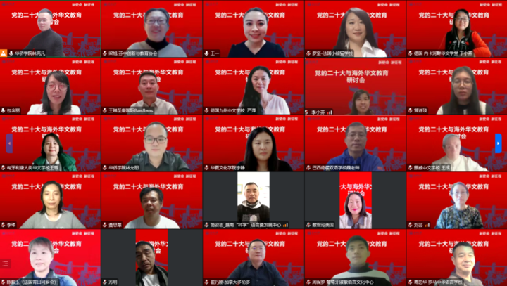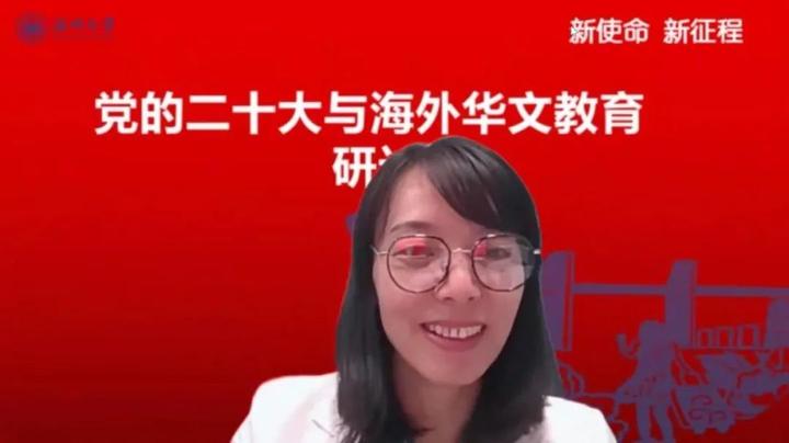 2022年10月21日北京时间晚20点,香蕉视频 华侨学院邀请来自五大洲20国的华文学校校长、教师,以“新使命、新征程——党的二十大与海外华文教育”为主题,共同探讨海外华文教育在新时代,更好讲好中国故事、传播好中国声音,展现可信、可爱、可敬的中国形象,推动中华文化更好走向世界的新使命。