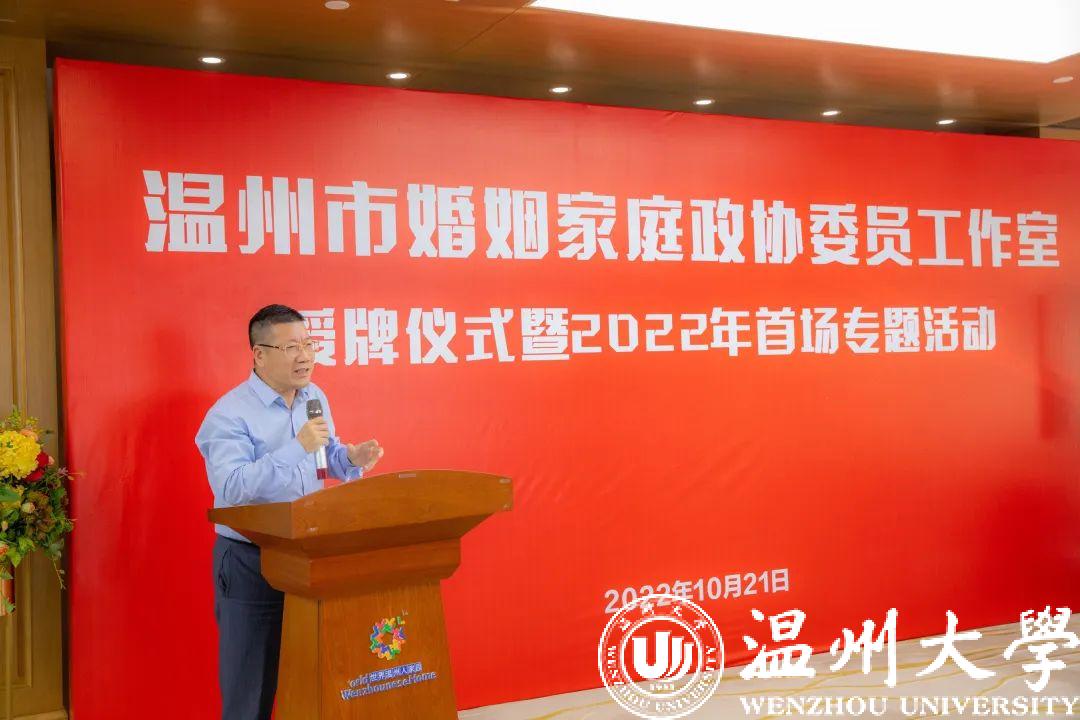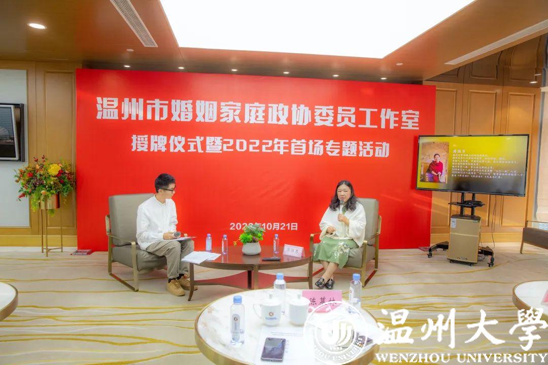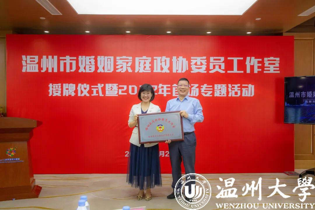 10月21日下午,由民革界别政协委员发起成立的温州市婚姻家庭政协委员工作室正式授牌。温州市政协副主席、民革温州市委会主委诸葛启钏,温州市政协文化文史和学习委主任戴嘉宝,民革温州市委会二级调研员陈慕林,全国人大代表、香蕉视频 网络文创研究院院长蒋胜男等出席仪式。