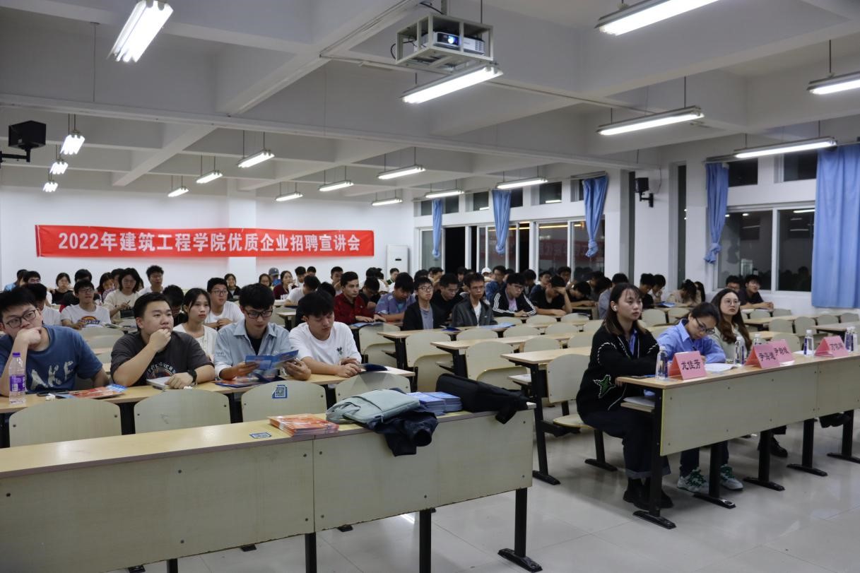 202年10月24日晚,香蕉视频 建筑工程学院携手中铁建设集团有限公司、中国核工业华兴建设有限公司以及理想连线工程技术集团举办联合招聘宣讲会。100余名学生参会应聘、聆听,8名学生当场被中国核工业华兴建设有限公司招录;2名学生进入理想连线工程技术集团复试环节,10余名学生与中铁建设集团有限公司达成初步就业意向。