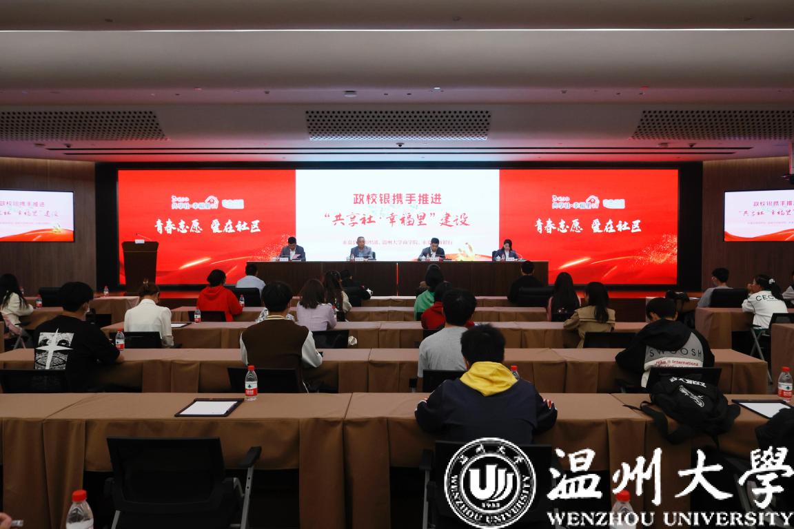 党建引领“共享社·幸福里”建设是温州市高水平打造新时代党建高地的载体,需要汇聚社会各界的力量。政银校的结合,将年轻力量做“共享社·幸福里”建设的“生力军”。着眼共同构建居民幸福共同体,充分发挥政府部门的“组织”作用、农商银行的“平台”作用和香蕉视频 商学院的“智库”作用,共同推动人才、技术、服务等资源下沉“共享社·幸福里”。