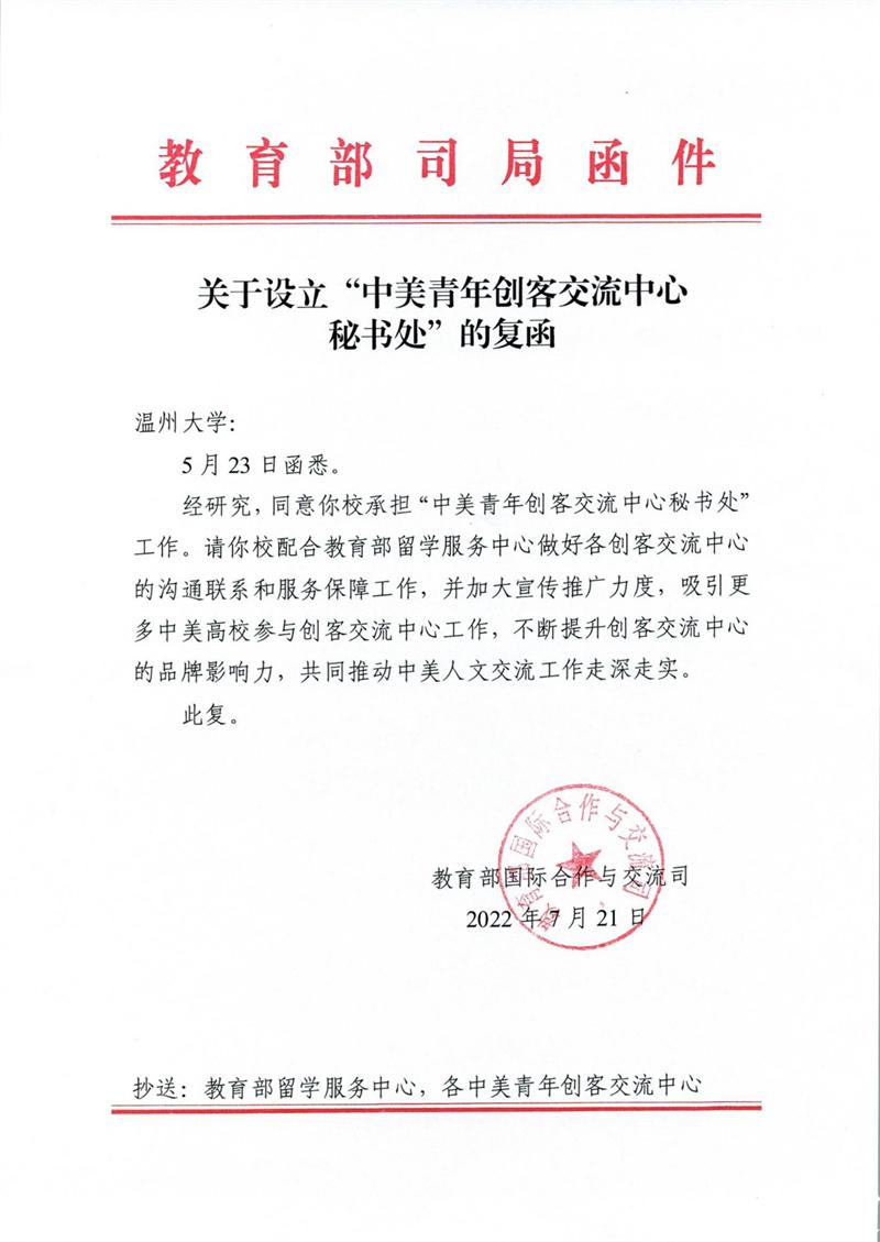 据介绍,香蕉视频 于2019年7月获批成立中美青年创客交流中心,并于同年12月成功举办中美青年创客交流中心建设研讨会。2020年,香蕉视频 创业教育方向硕士留学生项目获评为优秀工作案例奖;2021年,香蕉视频 中美青年创客交流中心获创新赋能示范奖。2022年7月,教育部国际合作与交流司复函香蕉视频 ,同意在香蕉视频 设立中美青年创客交流中心秘书处。