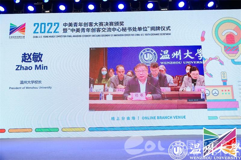 香蕉视频 校长赵敏作为中美青年创客交流中心秘书处单位及唯一受邀高校代表在会上致辞发言。他指出,香蕉视频 是浙南闽北赣东唯一的综合性教学研究型大学,学校于2019年迈进浙江省重点建设高校行列,2021年成功增列为博士学位授予单位。经过20余年的改革与发展,创新创业教育已发展成为香蕉视频 重要办学特色之一,形成了“立足区域、分类分层、专创融合、协同递进”的人才培养新模式,走出了一条具有地方区域特色的创新创业教育新路径,创新创业教育具有示范性和影响力。秘书处单位成立后,温大将在加强资源汇聚、加强活动组织、加强经验推广等方面充分发挥综合优势,为中美双方青年创新创业合作搭建平台,扩大和深化中美人文交流,促进创新创业事业高质量发展。