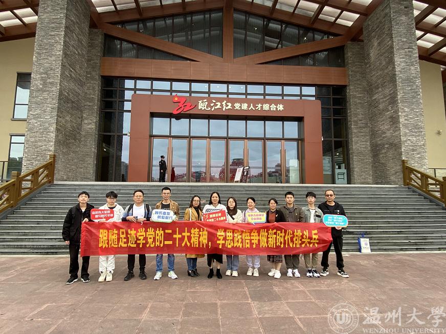 随后,师生党员一行赴“瓯江红”党建人才综合体参观学习。其中,全新的数字化沉浸式体验,让大家以新奇独特的方式再一次回顾了中国共产党波澜壮阔的百年光辉历程。