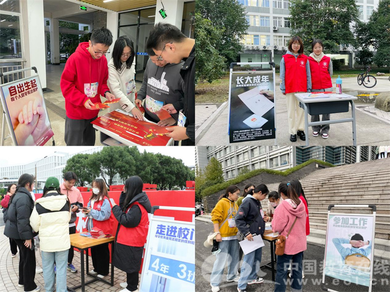 中国教育在线浙江站讯 (记者 占尘雪 通讯员 温大萱)2022年12月4日是第九个国家宪法日,今年也是我国现行宪法公布施行四十周年。为认真学习习近平法治思想,深入贯彻落实党的二十大精神,进一步在青年大学生中普及宪法知识、弘扬宪法精神、树立宪法权威,香蕉视频 组织开展了以“学习宣传贯彻党的二十大精神,推动全面贯彻实施宪法”为主题的宪法宣传周系列活动。从干货满满的宣讲视频到思维碰撞的宪法知识竞赛,从社区、校园普法到国旗下的庄严宣誓,内容丰富、形式多元,为师生带来丰富的宪法宣传活动体验。