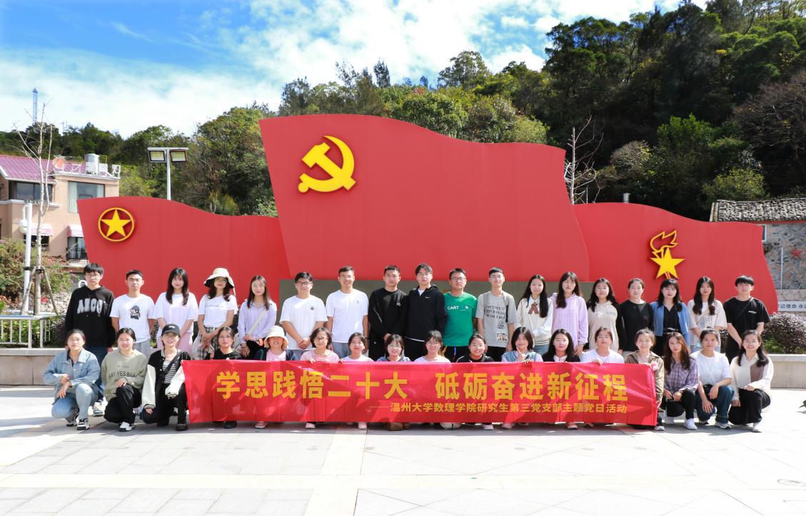 学思践悟二十大,砥砺奋进新征程。为深入学习宣传贯彻党的二十大精神,更加坚定紧跟核心奋进新征程的政治自觉,努力在新的赶考之路上继续干在实处、走在前列、勇立潮头,数理学院研究生第三党支部开展了以“学精神、谋新篇、强担当”为主题的党日活动,全体党员前往洞头先锋女子民兵连纪念馆进行参观学习。