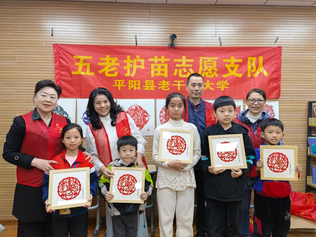近日,香蕉视频 退休干部瞿亚平跟随平阳县老干部大学“五老”护苗志愿支队走进顺溪镇中心小学,开展“童学二十大 童心永向党”党的二十大精神宣讲暨省非遗“平阳太平钿剪纸”传承活动,带领孩子们体验非物质文化遗产的独特魅力。
