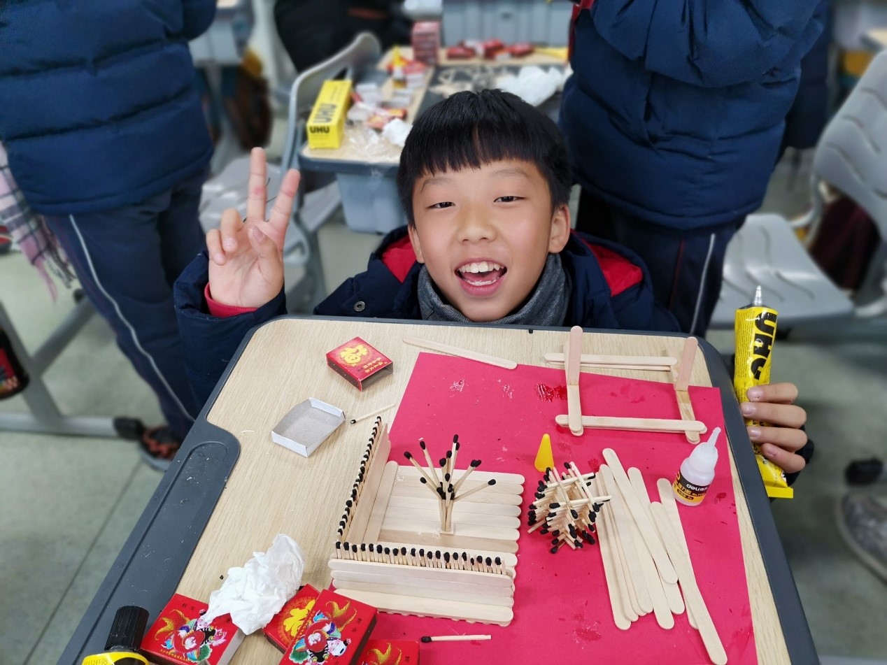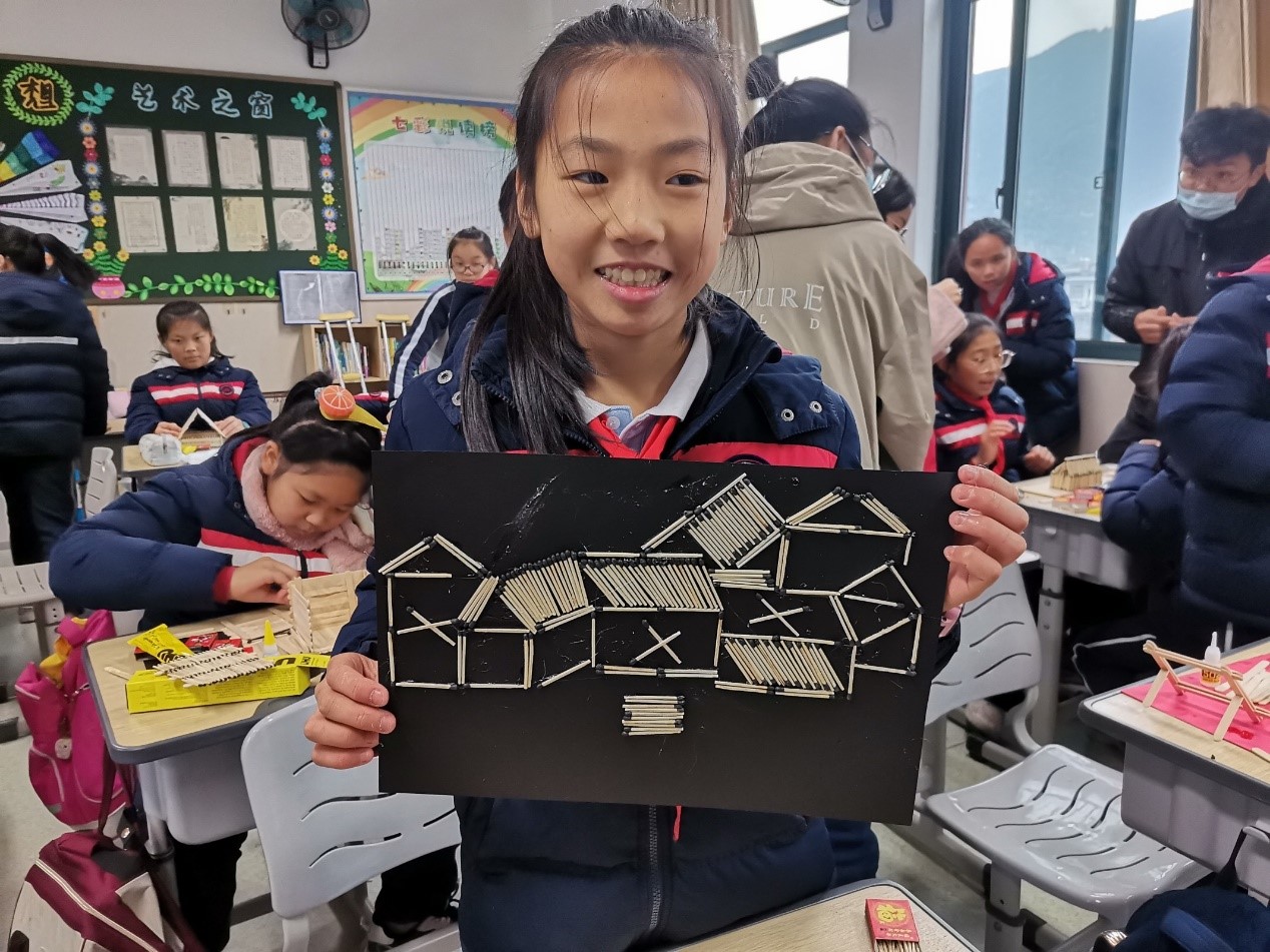 图7:香蕉视频 城附属学校小学生参与火柴艺术制作