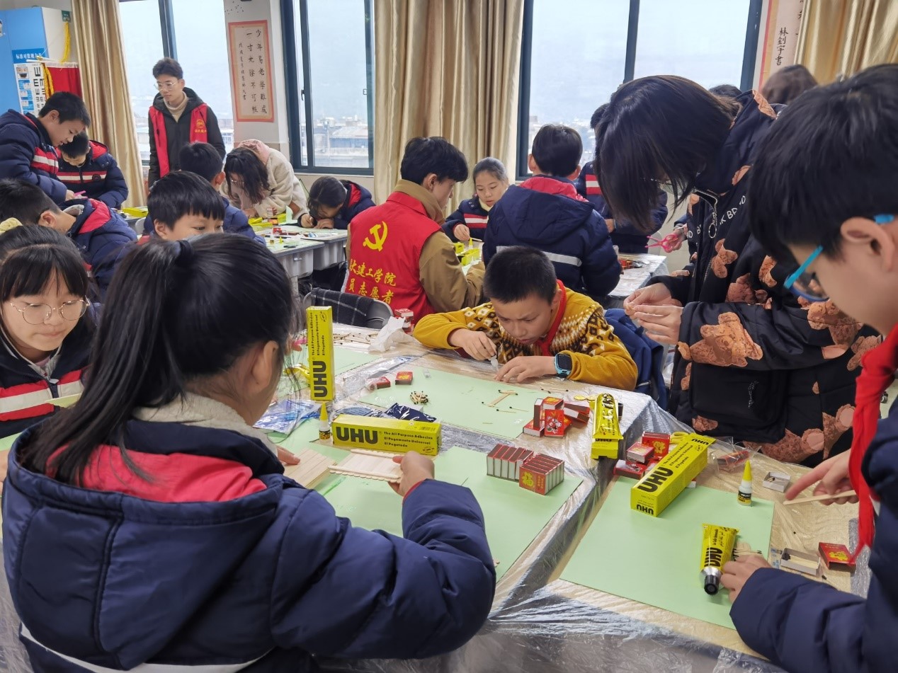 “老师你看,这是我跟大学生哥哥一起做的!”一位小朋友高高举起火柴模型向他的老师炫耀着自己的作品。火柴艺术节不仅仅在香蕉视频 本校开展,香蕉视频 团委还通过志愿者的形式,将火柴艺术节带进地方小学,让同学们与小朋友们一同动手创造,对丰富香蕉视频 志愿者活动形式,加强高校服务地方有着深远意义。
