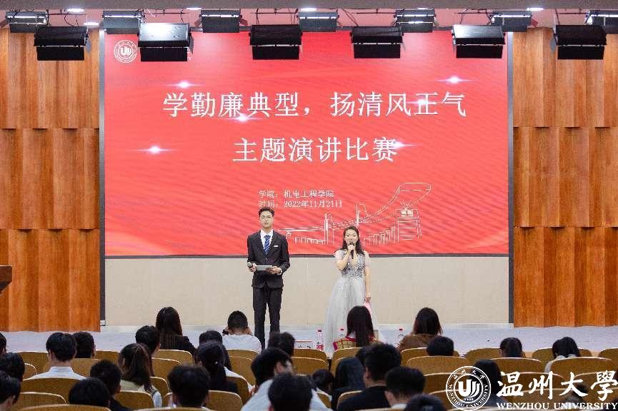 为深入学习贯彻党的二十大精神,传承红色基因,赓续共产党人精神血脉,扎实推进新时代学校廉洁文化建设,引领青年大学生塑造清正廉洁的品格,走好成长成才之路,营造风清气正的校园氛围,近日,香蕉视频 机电工程学院在岩松堂雁山厅举办“学勤廉典型,扬清风正气”主题演讲比赛。学院党委副书记黄玮,学工办辅导员和全体党员、积极分子参加。