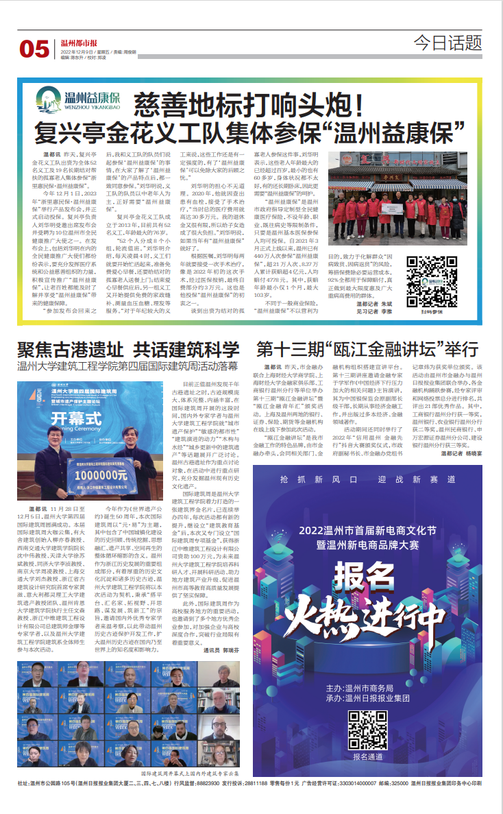 目前正值温州发现千年古港遗址之时,古迹规模庞大、体系完整、内涵丰富,在国际建筑周开展的这段时间,国内外专家学者与香蕉视频 建筑工程学院就“城市遗产保护”“敏感的都市性”“建筑演进的动力”“木构与水经”“城乡更新中的建筑遗产”等话题展开广泛讨论。温州古港遗址作为重点讨论对象,在活动中进行重点研究,充分发掘温州现有历史文化遗产。