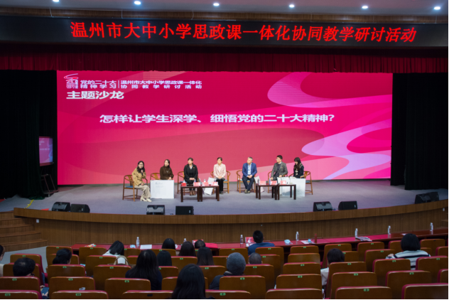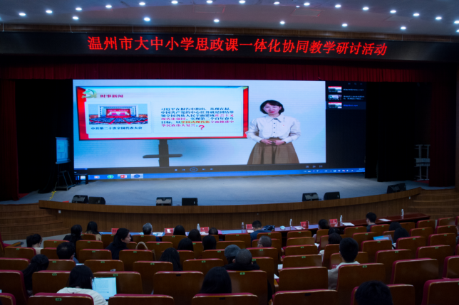 县(市、区)小学、初中、高中全体思政教研员,部分学科骨干教师代表、校长代表,温州市教育教学研究院全体党员同志参加活动。活动同时进行线上直播,全市思政教研组参加线上学习。