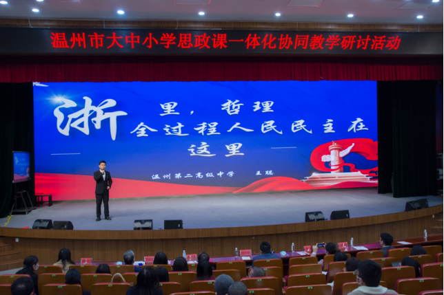 温州聚焦教育资源,打造教育教学共同体。在微课分享环节,龙湾区沙城镇第三小学教师孙琴基于少年能在现代化进程中有何作为的视角,从中国式现代化之生活、精神和志向角度,分享了微课《争做好少年 奔向现代化》;温州市第十七中学教师杨海静聚焦实现中华民族伟大复兴的历史使命,以一堂《中国式现代化 全面推进中华民族伟大复兴》的微课带领大家深刻领悟中国式现代化的内涵与本质要求,全面认识新时代中国特色社会主义伟大事业;温州第二高级中学教师王聪在《浙里,哲理——全过程人民民主在这里》的微课中,将“浙”与“哲”联系,具象化阐释全过程人民民主的时代表达与生动实践。