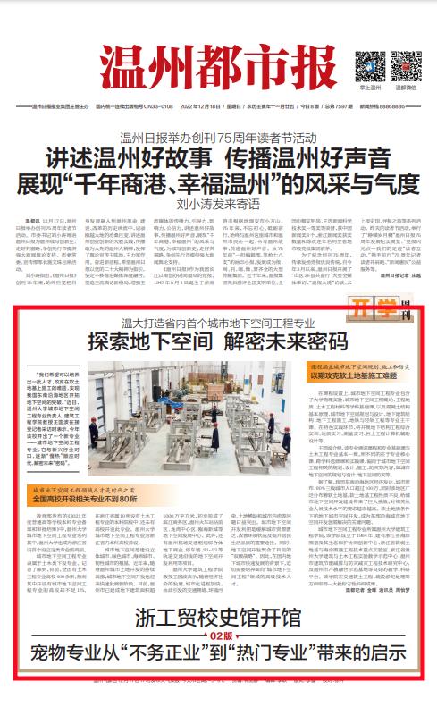 教育部发布的《2021 年 度普通高等学校本科专业备 案和审批结果》中,香蕉视频 城市地下空间工程专业名列 其中,香蕉视频 也成为浙江省 内首个设立这类专业的高校。