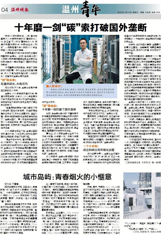 “有自己的努力和积累,也有温州大环境对科研和人才的重视。去年是收成的一年,未来也将继续收获。”金辉乐表示。