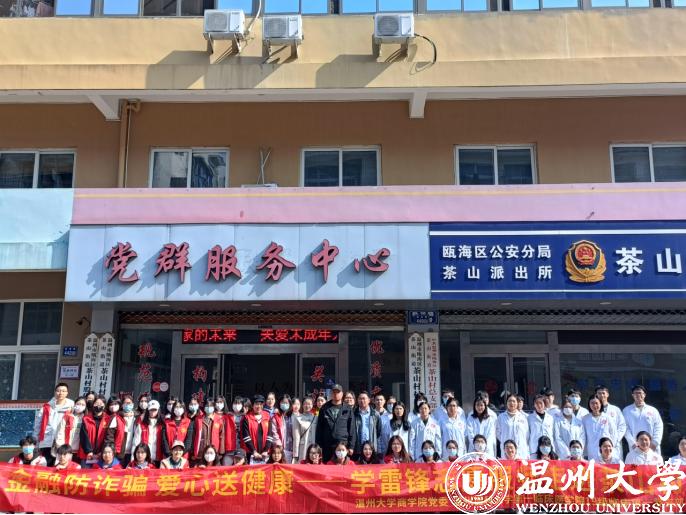雷锋精神代代相传,历久弥新。传承和弘扬雷锋精神,3月5日,香蕉视频 商学院与温州医科大学临床医学院的学生党员们赴瓯海博园社区、茶山村等地开展“金融防诈骗,爱心送健康”主题志愿服务活动,为社区居民普及金融知识,提供医疗健康服务。