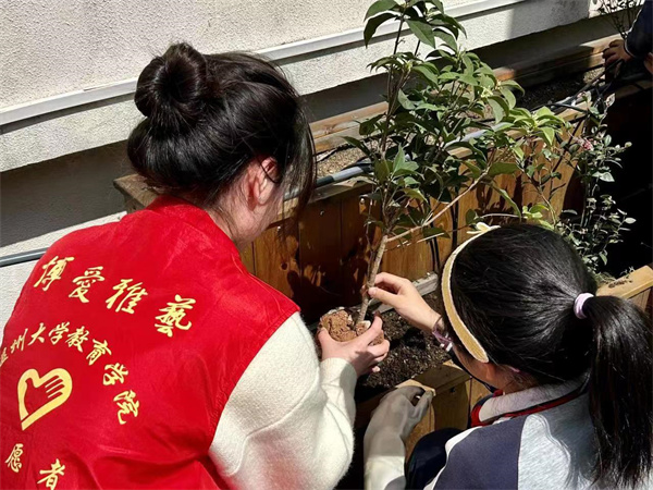 劳动是一切幸福的源泉。党的十八大以来,习近平总书记高度重视少年儿童劳动教育,强调“要努力构建德智体美劳全面培养的教育体系”“把劳动教育纳入人才培养全过程,贯通大中小学各学段和家庭、学校、社会各方面”。在全国第44个植树节到来之际,香蕉视频 教育学院的学生们发挥师范优势,将植树节与劳动教育相结合,大手拉着小手,既将“绿色的种子”播撒在土壤中,更将“德智体美劳全面发展”的意识播撒到孩子们心里去。