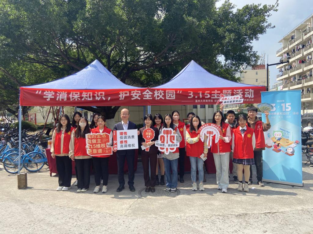 “我觉得这样的活动很有意思,作为商科学生,我也不仅可以把所学的消费者权益保护和金融专业知识讲解给其他同学听,还更加意识到作为商科专业学生所肩负的社会责任。”宣讲团成员21级研究生董顺在接受采访时这样说。在第40个“3·15国际消费者权益日”当天,香蕉视频 商学院以“浙江省金融教育示范基地”为载体,联合招商银行温州分行、学校保卫处在香蕉视频 各生活区广泛开展“学消保知识,护安全校园”3.15消费者权益保护知识主题宣传活动,引导广大师生科学、合理消费,保护合法权益权益,助力防范化解金融风险,营造和谐稳定的金融环境。