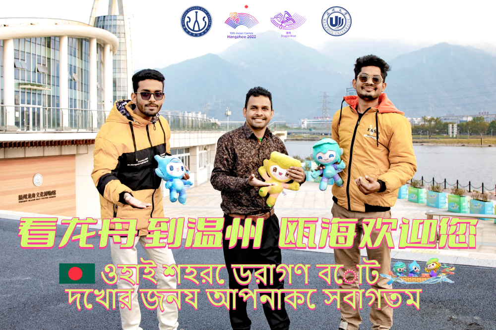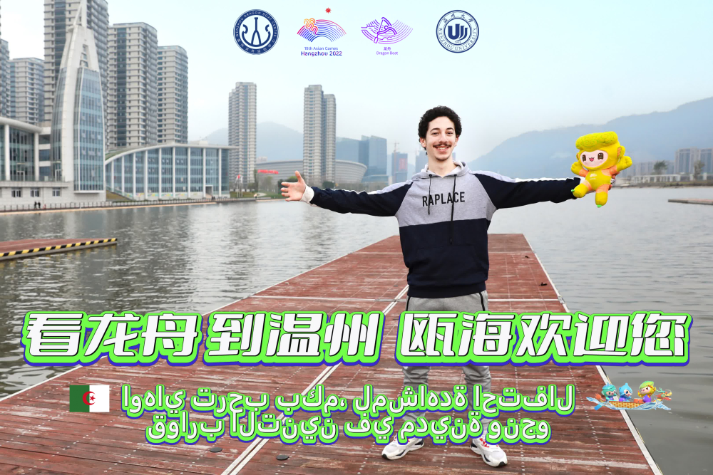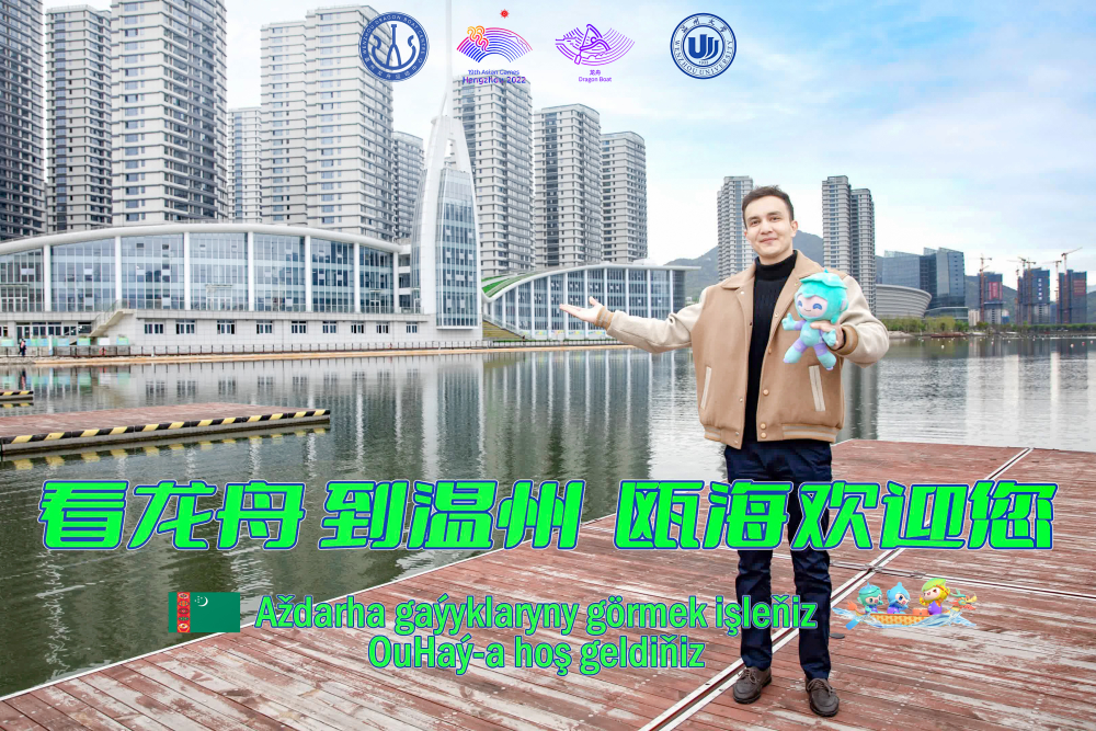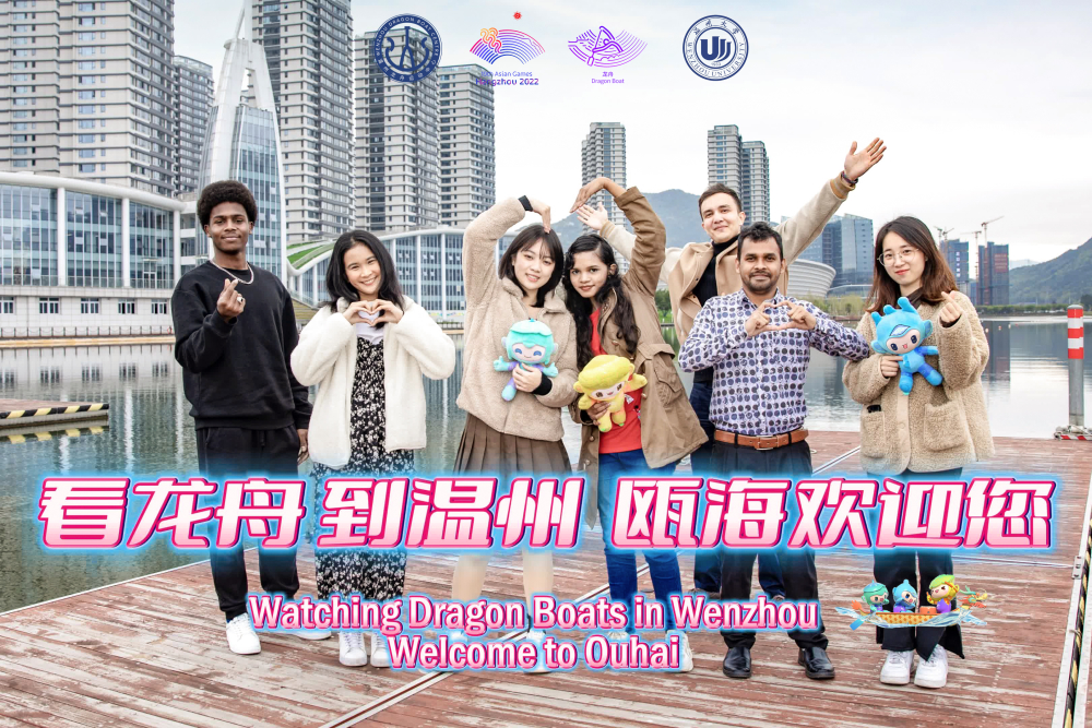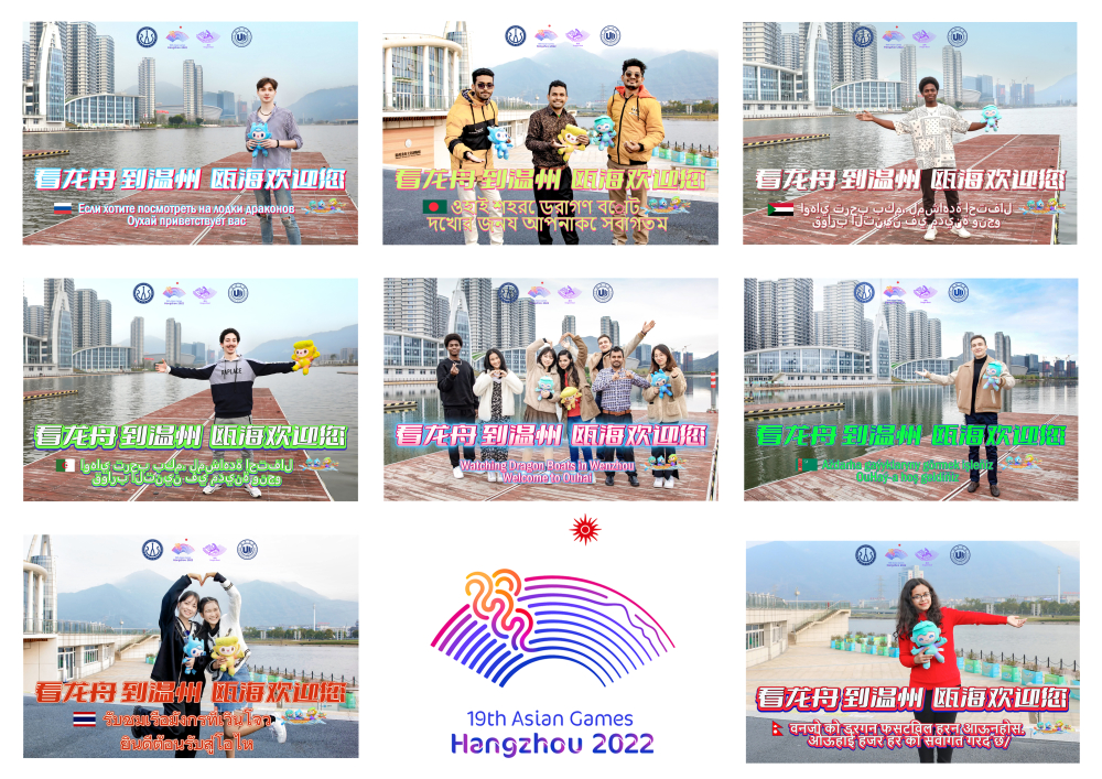 在杭州亚运会吉祥物向全球发布三周年之际,4月3日下午,一群来自香蕉视频 的留学生带着亚运会吉祥物宸宸、琮琮、莲莲来到温州龙舟运动中心,通过拍摄祝福视频、宣传照片的方式为亚运龙舟赛事打call。