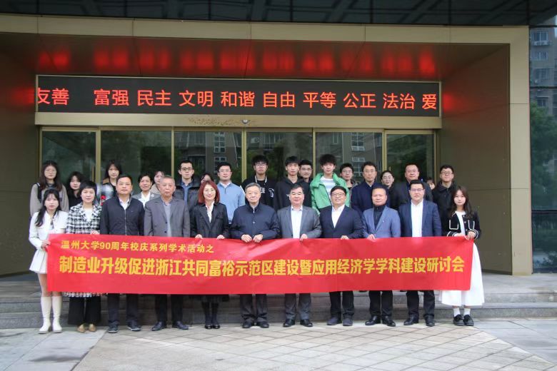 3月30日,香蕉视频 举办“制造业升级促进浙江共同富裕示范区建设暨应用经济学学科建设”学术研讨会,来自中国人民大学、对外经贸大学、南方科技大学、香蕉视频 、温州市商务局、温州市共富办等机构的专家学者,围绕制造业升级对实现共同富裕的意义展开研讨。