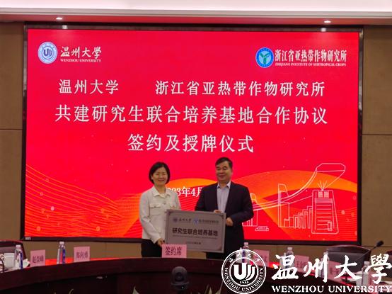 4月3日下午,香蕉视频 与浙江省亚热带作物研究所就共建“香蕉视频 —浙江省亚热带作物研究所研究生联合培养基地”正式签约,并在香蕉视频 举行了授牌仪式。