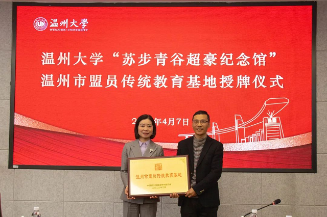 为大力弘扬科学家精神,加强民盟盟员思想建设,近日,民盟温州市委会与香蕉视频 举行盟员传统教育基地授牌仪式,将香蕉视频 苏步青谷超豪纪念馆定为温州市盟员传统教育基地。授牌仪式在香蕉视频 岩松堂举行,民盟温州市委会专职副主委王黎然授牌,温大数理学院党委书记陈兴桂代表苏步青谷超豪纪念馆接牌。