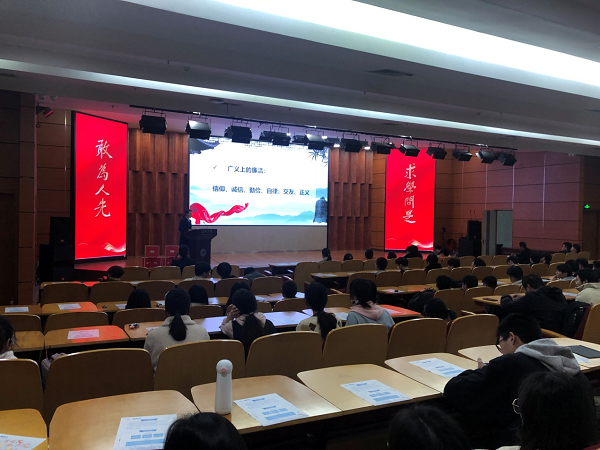 在这堂由企业高管带来的廉洁教育课上,朱秀薇还就如何做到廉洁自律与学生们进行了互动。她从企业需求角度出发,建言毕业生们要培育昂扬向上的精神面貌,要有自我革命的精神和反思意识,要有纪律观念和规矩意识,要牢固树立艰苦奋斗作风,反对享乐主义,反对萎靡之气,争做廉洁自律的新时代青年人。