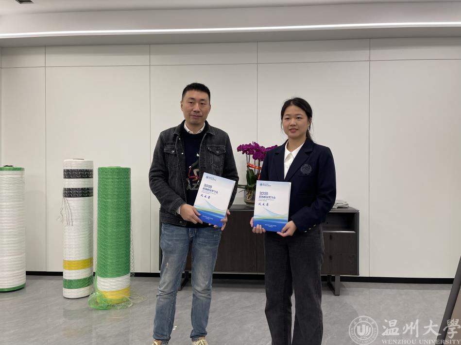 “学长,终于见到你了……”香蕉视频 2023届省级优秀毕业生叶依秀再过两个月就毕业了,4月12日,跟随学校学院领导一同来到瑞安超扬新材料有限公司见到了香蕉视频 2001级校友岑帆。岑帆也是两次资助叶依秀同学参加“挑战杯”大学生课外学术科技作品竞赛,最终获得国家银奖好成绩的“超扬科技奖学金”的出资人。