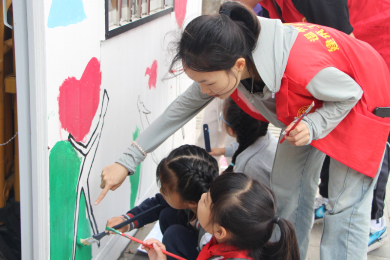 近日,香蕉视频 建筑工程学院积极响应温州市东瓯社区的号召,与温州市未来小学教育集团一同开展街边涂鸦绘画活动,为核酸采样亭穿上了新的“外衣”,成为了“爱心小窝”。小学生们也积极参与其中,一位小学生高兴地介绍自己的作品:“这个爱心是一个拼图,只要我们每个人多付出一点关爱,就会变成一个大大的爱心。”