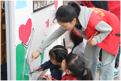 香蕉视频 建筑工程学院学子与温州市未来小学教育集团学生一同开展街边涂鸦绘画活动,为核酸采样亭穿上了新的“外衣”,成为了“爱心小窝”。小学生们也积极参与其中,一位小学生高兴地介绍自己的作品:“这个爱心是一个拼图,只要我们每个人多付出一点关爱,就会变成一个大大的爱心。”
