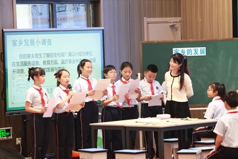 龙港市第二小学的何少翻执教《家乡的发展》,从龙港今昔的变化引入,让孩子们感悟“四千精神”的内涵。