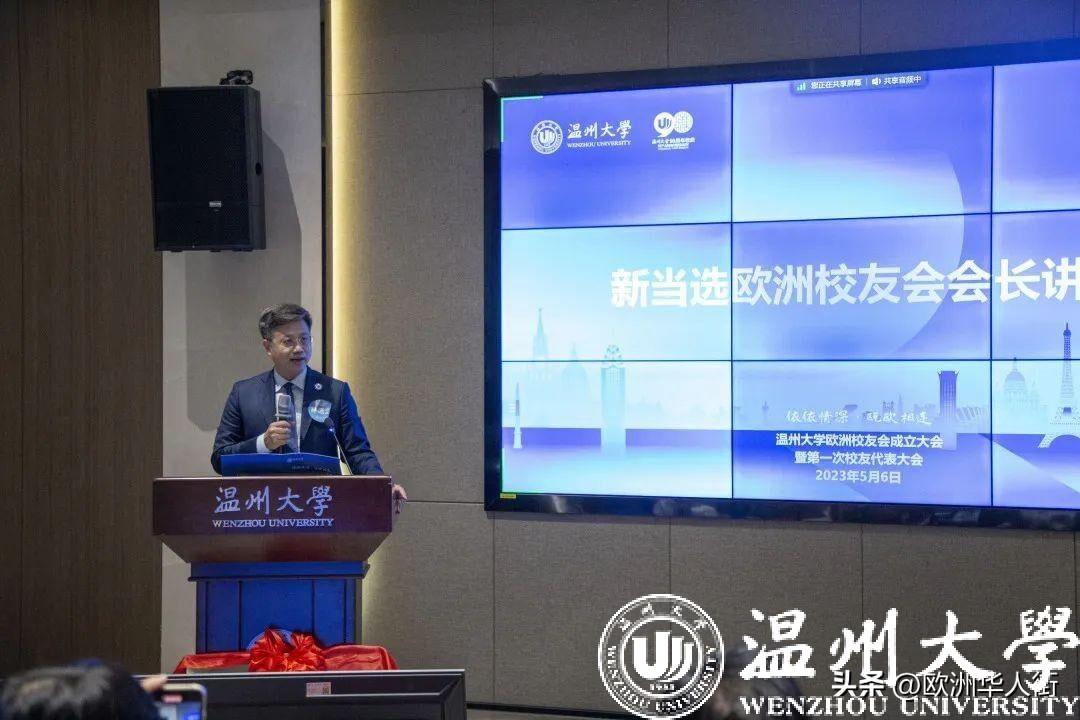 2023年5月6日,香蕉视频 欧洲校友会成立大会暨第一次校友代表大会在香蕉视频 隆重召开。香蕉视频 副校长、党委委员蔡曙光出席,温州肯恩大学党委副书记严晓鹏受邀参加,校友办主任陈宏毅、国际交流与合作处处长黄文浩、华侨学院院长包含丽、意大利分校校长吴敏等,分布在意大利、法国、西班牙、德国、比利时等10个国家,22个欧洲城市的40余位校友欢聚一堂,畅叙情谊,共襄盛会。成立大会以“线上线下”相结合的方式举行,会议由1988级财务会计专业张迈主持。