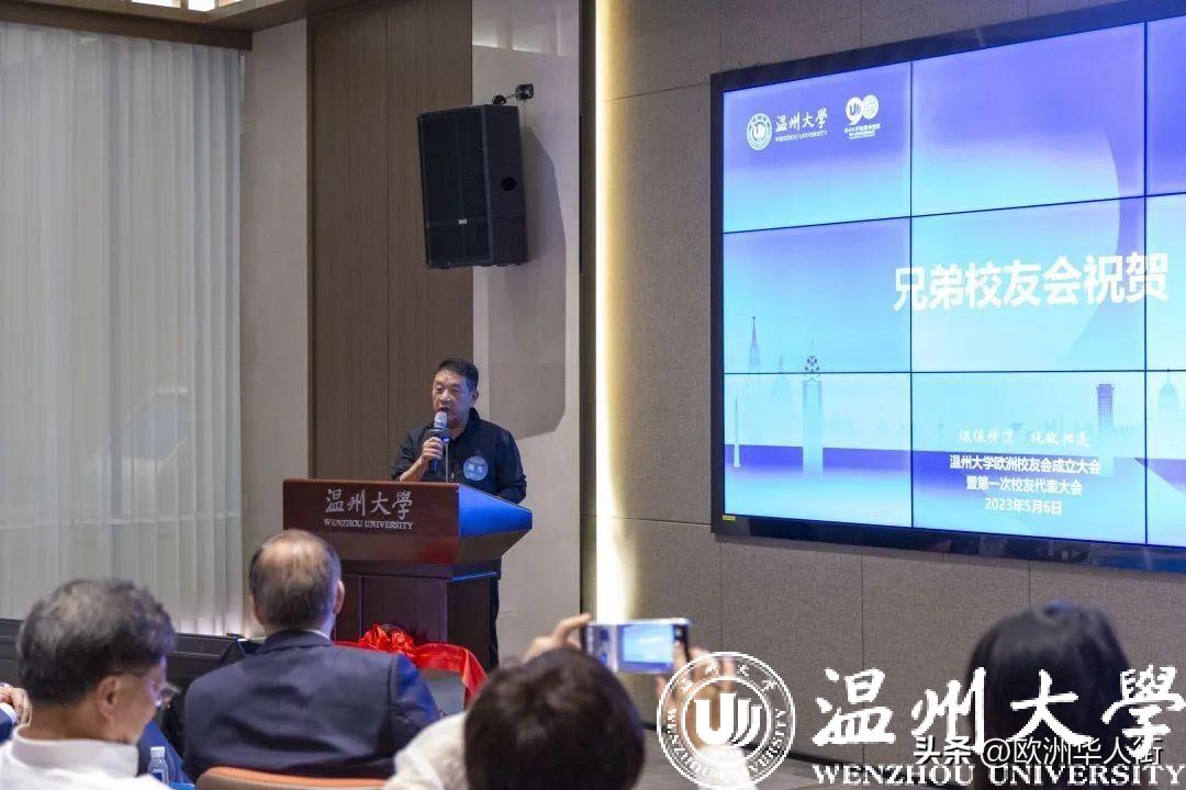 蔡曙光代表学校向欧洲校友会的成立、向当选的第一届理事会成员和会长孙运之表示热烈的祝贺。蔡曙光介绍了近年来学校的建设发展情况。他表示,学校经过90年的沉淀和发展,枝叶繁茂,校友遍布海内外,学校的高质量发展离不开广大海内外校友的大力支持。母校荣则校友荣,校友强则母校强,母校与校友共生共荣,希望欧洲校友会承盛世风华,担时代之责,紧密联系广大欧洲校友,架起校友与校友之间、校友与母校之间沟通、交流、合作的桥梁。