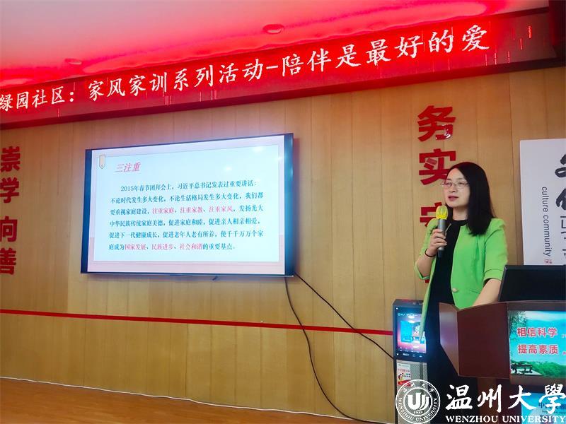 “孩子最渴望的、最好的礼物其实就是家人的陪伴。或许是爸爸与孩子嬉戏打闹,或许是与妈妈的一起做手工,或许是晚上父母坐在身边讲故事,或许是和全家人一起外出野餐……”近日,温州市家庭教育服务进社区家风家教系列活动进文化礼堂走进蒲鞋市街道绿园社区,香蕉视频 教育学院教育系支部书记、香蕉视频 家庭教育研究院院长、香蕉视频 家庭家教家风讲师团团长、浙江省妇女儿童发展智库专家、温州市家庭教育学会副会长周奇教授为家长们开展《陪伴是最好的爱》家庭教育公开指导课。