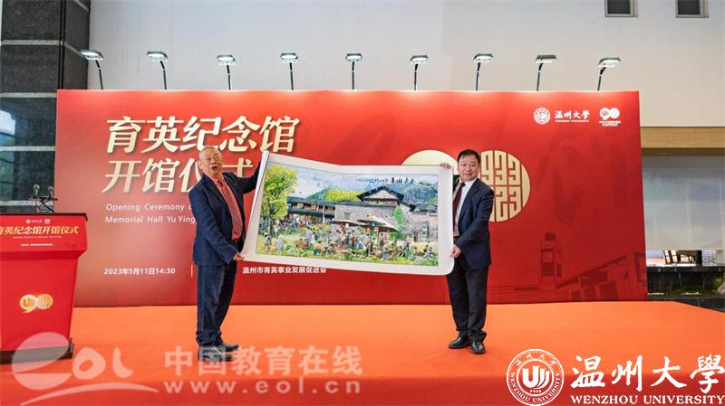 活动现场,何朝育的儿子同时也是温州市育英事业发展促进会顾问何纪豪先生到场,为其父母的纪念馆揭牌,并向香蕉视频 捐赠了瓯绣作品“永嘉旧事”,庆贺香蕉视频 建校90周年。由于疫情原因,近年来何纪豪先生少有回温,借香蕉视频 90周年校庆与育英纪念馆开馆之际,三年来首次回到温州。