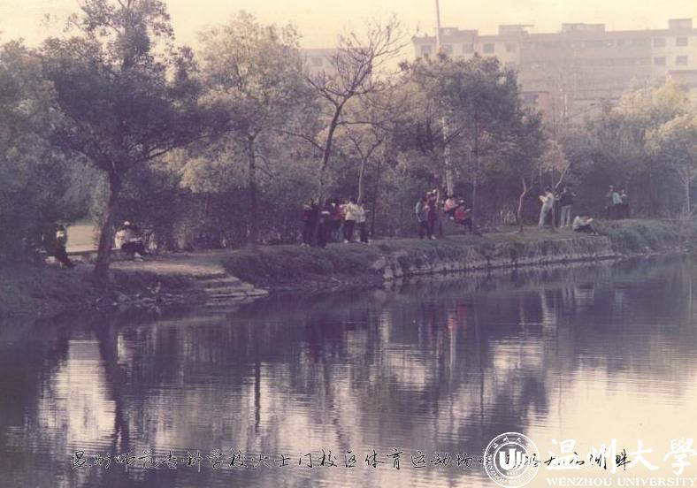 温州师范专科学校大士门校区体育运动场旁边的九山湖畔