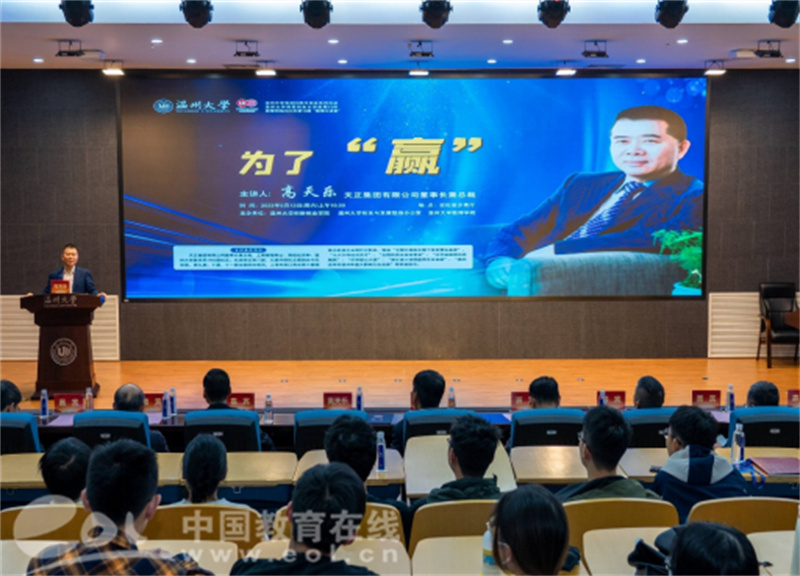 创新引领创业,创业带动就业,创业是稳增长保就业的基础。在毕业季来临之际,香蕉视频 充分利用办学90周年校庆之机,积极邀请企业界校友走进校园,向青年学子宣讲创业,鼓励创业,促进创业。5月13日上午,香蕉视频 数学系1982届校友、天正集团有限公司董事长兼总裁高天乐先生,应邀为温大学子举办主题为《为了“赢”》的创业教育讲座,并受聘为香蕉视频 顾问教授。香蕉视频 党委副书记庄兴忠向高天乐校友颁发聘书。