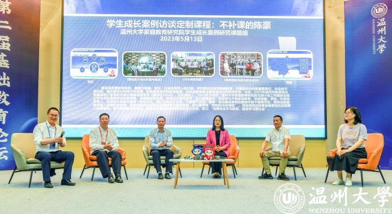下午举行了家校社共促学生成长案例研讨会。研讨会有香蕉视频 教育学院党委副书记章园园老师主持,香蕉视频 教育学院教授、温大家庭教育工作坊负责人、香蕉视频 家庭教育研究院院长周奇、香蕉视频 教育学院党委书记何毅、温大校友、瓯海中学正高级教师郑小侠、瓯海中学校长金志正、瓯海中学教师高雪鸥向与会嘉宾展示了学生成长案例访谈定制课程《不补课的陈豪》。