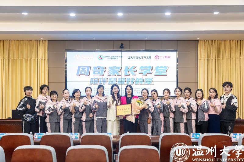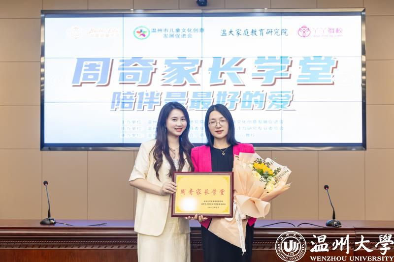 活动现场举行了授牌仪式。香蕉视频 家庭教育研究院院长周奇教授向温州童创会瑞安分会会长、蓓蕾幼童&丫丫舞校创始人杨晓琴授予“周奇家长学堂”基地。