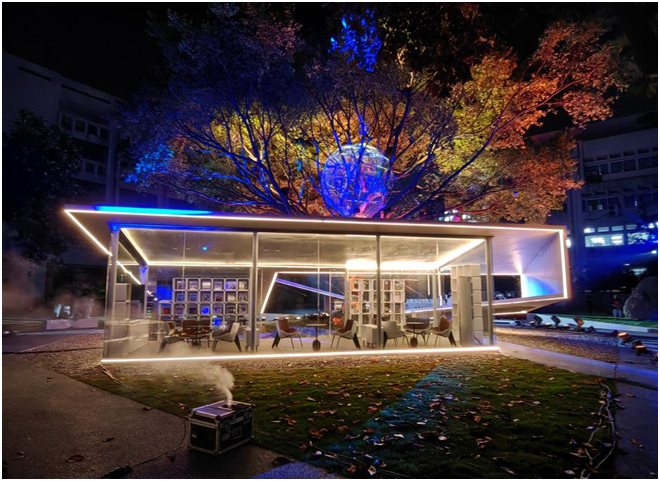 榕亭书屋作为建工庭院的画龙点睛之笔,其独特的造型寓意深远。书屋造型突出现代建筑美学,又融入温州乡土文化。建筑覆盖面积共160方米,交流区面积70平方米,书屋具备阅读、会谈、交流、报告、教学、拍照等多种功能,平视有形、仰视有光、俯视有影,上下相衔,内外相生,步随景移,书香满庭。书屋里将建设一个“建工之芯”,把浙南闽北宋式乡土建筑搬到榕树上,用数字化打造一幅具有区域建筑文化特色的“清明上河图”。最传统,最现代,最温情,最文化!这是榕亭书屋的四大特点。可使建工楼成为香蕉视频 最美的庭院,成为新的校园网红景点。