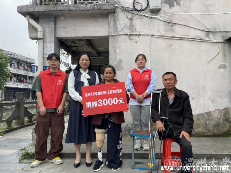 香蕉视频 师生帮助的是一名50多岁的曾阿姨,是他们帮扶了三年的单脚残疾人。曾阿姨的丈夫也是一名姓曾的高位截肢残疾人。他们虽来自不同的省份,因为命运的相似,他们俩相相互扶持共同生活多年了,目前居住在温州南白象街道一个低矮破旧的房屋里。志愿者们三年来为他们送来各季节的鞋子,米、面、油等生活用品;还在看望慰问他们的同时,给曾氏夫妇的家中墙壁贴上了贴纸,帮助他们整理和改造住宿环境。志愿者们在多次帮扶过程中了解到曾阿姨的截肢是具备安装假肢的条件的,只是打零工的收入微薄,只够温饱,没有多余的钱购买假肢。而曾阿姨也因为长期需要跪着做家务活等,截肢的右脚残肢上的结痂一层一层,又厚又硬,志愿者每次看到都非常心疼。为了让曾阿姨能够生活的更加便利,志愿者们四处联系筹措,希望能为曾阿姨装上一副全新的假肢。通过多方努力,志愿者们联系到瓯海残联并获得了5000元的资助。这离全部的假肢制作费用还差一部分,于是就有了开始的捐款情景。